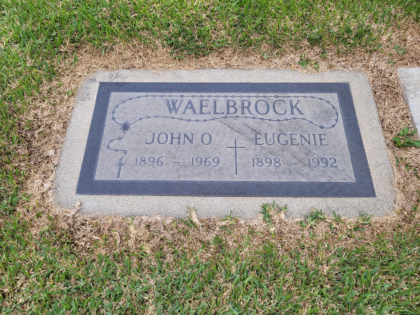 The Waelbrock’s were devout Catholics, and much of their life involved the Mission. Their kids went to school there. They obviously attended church there. Knights of Columbus and Church Picnics and and Holy Services. Not to mention weddings, funerals and baptisms.