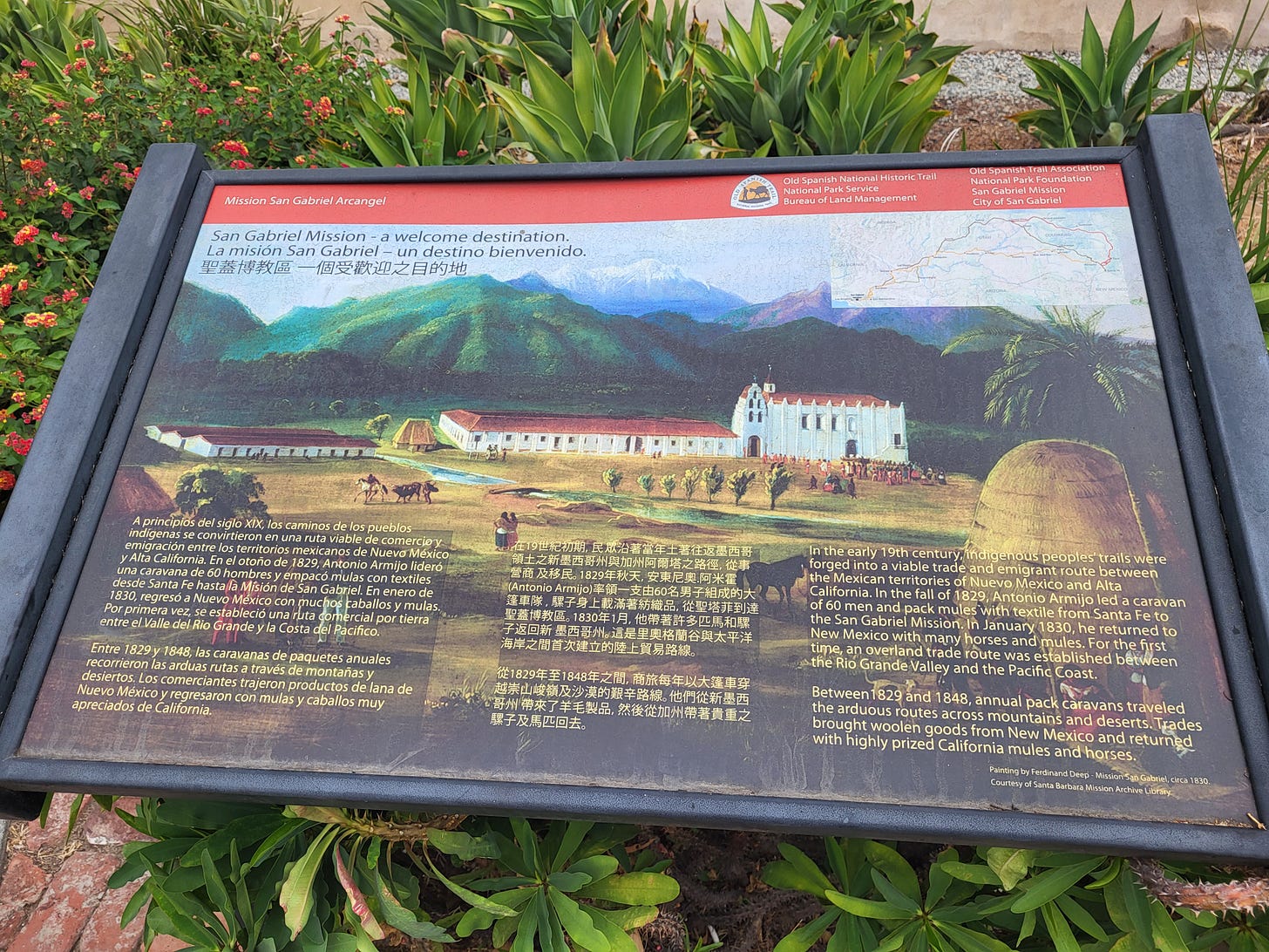 So, fresh off my trip to New Mexico, with a side visit to Durango, CO, I walk around the Mission and discover informative panels I’ve never seen before. And that we’ve traveled the same path. From here to there and back.